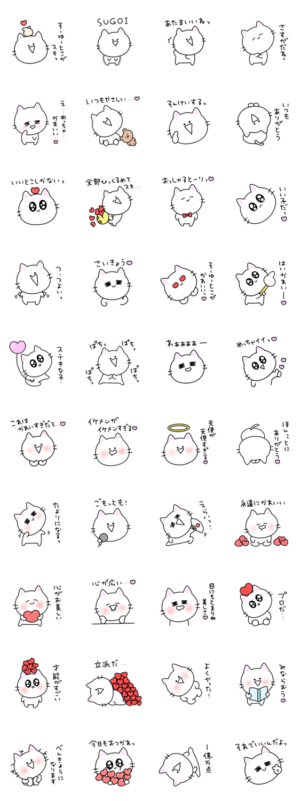 褒めちぎるシュールなミニ白猫のスタンプです。eribo より発売