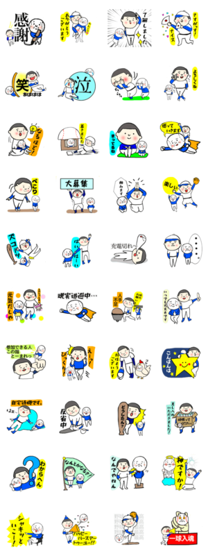 野球がすき!坊主/ボール/部活/少年野球/中学野球/高校野球/甲子園/使いやすい/ゆるい/野球部員、野球母、野球父が使えるかわいい野球スタンプです。Glory より発売