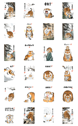 人気クリエイターBu2maより「猛虎下山」のスタンプが日本初登場!猛虎なのに、もっちもちのモフモフでかわいい♪虎の魅力がたくさんつまったスタンプです。