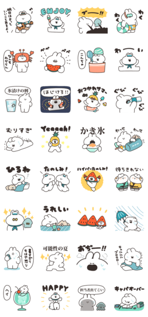 夏仕様のうさぎのスタンプです。ナポリ より発売