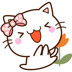 リボンをつけた小さい白猫『ちびシロ』。「おはよう」から「ありがとう」「おつかれ」「おやすみ」等を含めた毎日便利なネコスタンプ。しろねこ好きな方にぜひ。【かたこ】かたこ より発売
