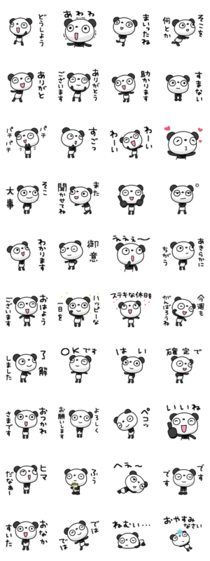 ふんわかパンダのポップタッチ風。第10弾。「すまない」「御意」から「すごっ」まで。さらっとシンプルに使いやすいスタンプ集。ノリノリ気分であなたの気持ちを届けよう。Mami / エストループ より発売