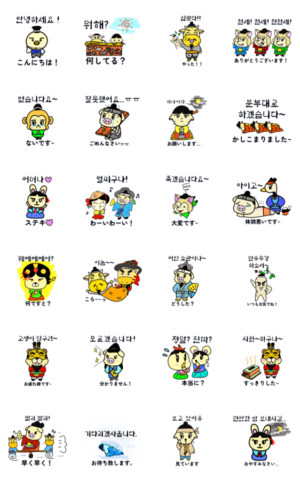 韓国・朝鮮豆知識Youtubeチャンネル「MoGoMoGo」のキャラをスタンプにしてみました!韓国ドラマや時代劇がお好きな皆さん、是非ご利用ください♪