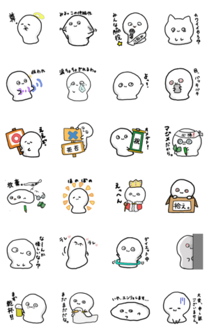 おいらの可愛さ伝われぇぃ! 【学生・ヨーグルト・もち・日常・白・しりとり・りんご・ゴリラ・ラッパ・パンツ・つみき・キリン】 スタンプ説明文って書くことないよね。naono より発売