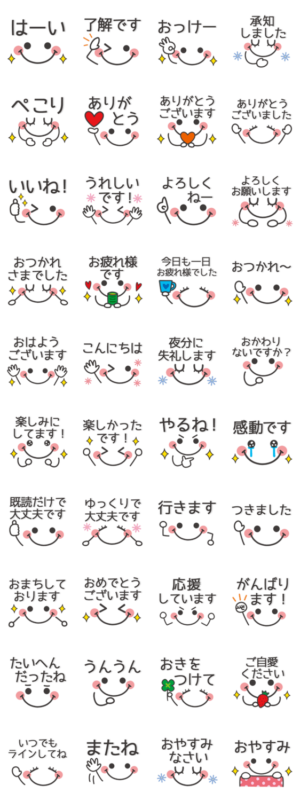 毎日使いやすい、シンプルな顔文字風のフェイススタンプです!敬語とタメ語の両方入りです。HRYs より発売