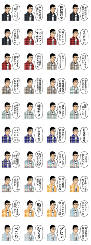 【ネタ/煽り/どや顔/面白い/愛/返信/便利/使いやすい/ムカつく/友達/感想/かっこいい/イケメン/眼鏡/妄想/ネット/色々/意味不明/ウサギ/学校/バーチャル】