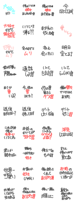 世の彼氏・旦那の為に、カップルのために、恋愛、メンヘラ、鬼可愛い、面白い、滅っぽう使いやすい、刃のように鋭い文で作りました