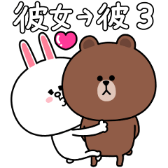 カップルで使える、こちらは彼女用うさぎ(コニー)のスタンプです。彼氏用くま(ブラウン)もあるので、恋人はもちろん、ご夫婦でも使ってみてね!今回もサリーもいるよ! ※BROWN & FRIENDS をみんなでつくろう!キャンペーン参加スタンプですユウィズ より発売