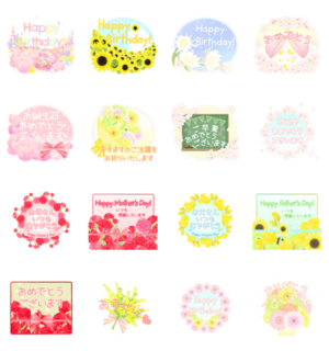 飛び出す! お祝い事!母の日!父の日!お花畑 スタンプ画像一覧