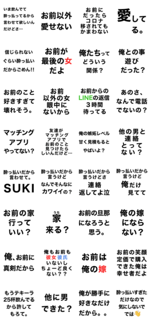 【小スタンプ】酔っ払ったノリであの子に送るスタンプ【面白い/ネタ/酒/飲み会/恋愛/夫婦/嫁/旦那/妻/夫/彼氏/彼女/浮気/束縛/カップル】