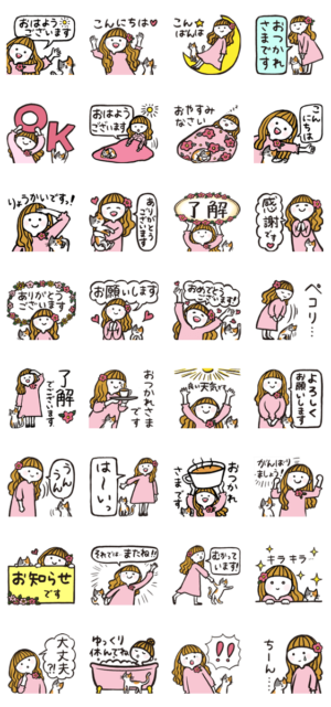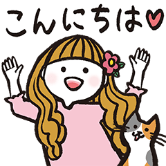ふらわーちゃんと三毛猫のご挨拶スタンプです。お花が大好きな女の子とネコさんが可愛くご挨拶します。春らしいスタンプです。
