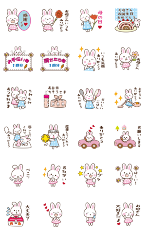 お母さんにたくさんありがとうを伝えることができるスタンプです/母の日/肩たたき券/おてつだい券/カーネーション/お母さんありがとう/お母さん誕生日/うさぎ