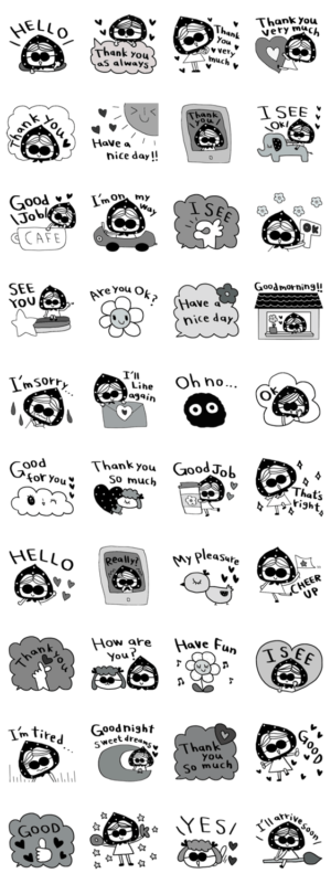 かわいい英語スタンプ368白黒レトロ スタンプ画像一覧