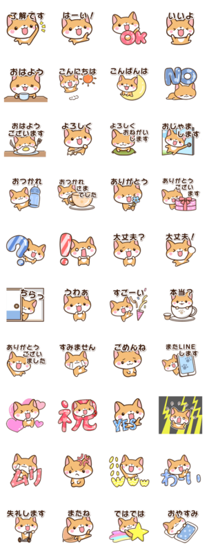可愛い茶色のイヌスタンプ。毎日使える便利なスタンプです。基本的な言葉やあいさつを集めました。コーギー、柴犬、秋田犬等の犬を飼っている方にぜひ。【かたこ】かたこ より発売