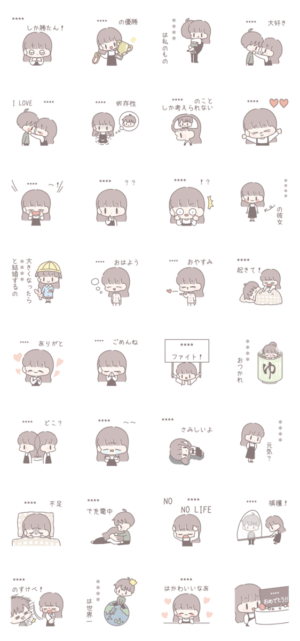 カップルや夫婦向けの、彼氏を愛でて褒めるスタンプです。関連用語:同棲/彼女/女の子/推し/溺愛/妻/彼氏/応援/かわいい/恋人/好き/カスタムスタンプ/名前からしれんこ より発売