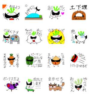 これが初めてのスタンプになります。やさ ”ぐれ” た ”かぶ” で ”ぐれかぶ” という名前のキャラです。愉快な野菜の仲間たちも少しずつ登場する予定。【やさぐれおじさん】ぐれかぶ より発売