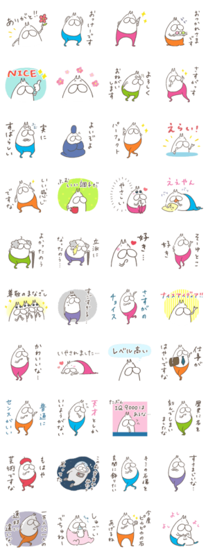 ほめることをテーマにしたスタンプです。ねこタイツと一緒にシンプルにほめてみたり、時々ちょっとクセ強めにほめたりしてトーク相手と良好な関係を築き上げましょう。