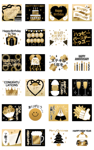 ゴールド×モノクロ*誕生日&お祝い スタンプ情報