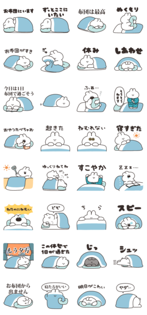 布団とうさぎのスタンプです。ナポリ より発売