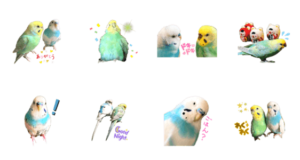 うちのセキセイインコのマメちゃんとおもち君です。LINEスタンプメーカーでつくってみました。もふだもふお より発売