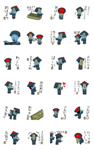 中国のゾンビ、キョンシーが跳ねるぞ。挨拶で使える言葉がたくさん入ってます。道士の絵文字もついてるぞ!ホラー要素は控えめだ。ハロウィンにも/アンデッド/ヴァンパイアスカルムクロ より発売