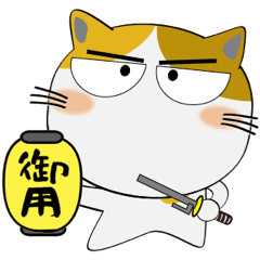 三毛猫の武士ことば(武士語)のスタンプ。毎日よく使う言葉を武士語でサポート。猫好きな方もそうでない方もお勧め。やさしい言葉も敬語もあるよ。御意。よきにはからえ!