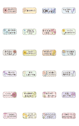 優しいお花と言葉ではげます、大人の女性が使いやすい気遣いスタンプです。NAKAYUKA より発売