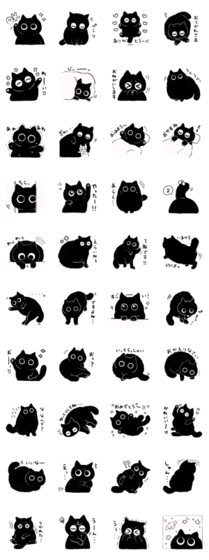 うろくんはくろくてふとくてやさしいせかいいちしあわせなねこ。 長毛のもふもふ黒猫うろくんのスタンプ第3弾。おがころろみ より発売