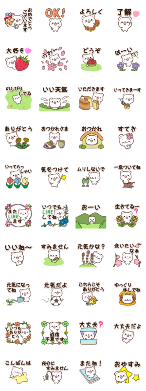 小さい白熊のスタンプ。毎日使える言葉やあいさつを集めた可愛いクマスタンプ。『チビくま☆』スタンプの第二弾。家族や会社、学校でも使いやすいスタンプです。【かたこ】かたこ より発売