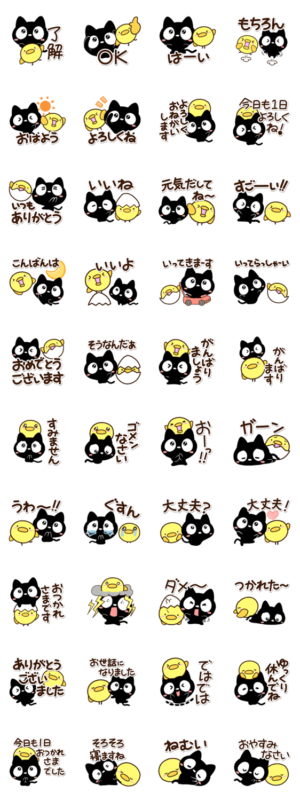 『クロネコすたんぷ』等の絵文字もあります。『まるピヨ』と黒猫のコラボスタンプ。シンプルな文字と、基本的な言葉を集めました。くろねこにひよこキャラ好きな方にぜひ。