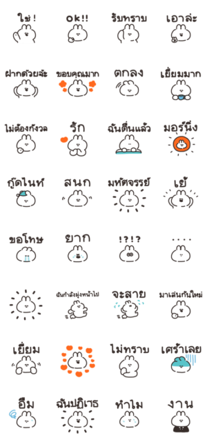 使いやすいうさぎのスタンプです。タイ語版。ナポリ より発売