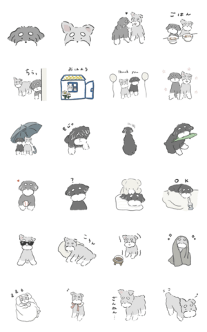シュナウザーのjiji(ジジ)ちゃんとtoto(トト)ちゃんの手描きイラストスタンプです。yuuna2246 より発売