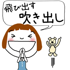 ボブヘアの女の子の大きい文字が動く!飛び出す!吹き出しPOPOUPポップアップスタンプ☆シンプルで見やすく使いやすい♪edacchiedacchi より発売