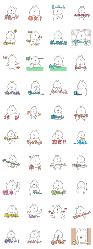 ゆるい絵柄がかわいいのとオノマトペやいろんな状況で使えそうなスタンプがあってよさそう。