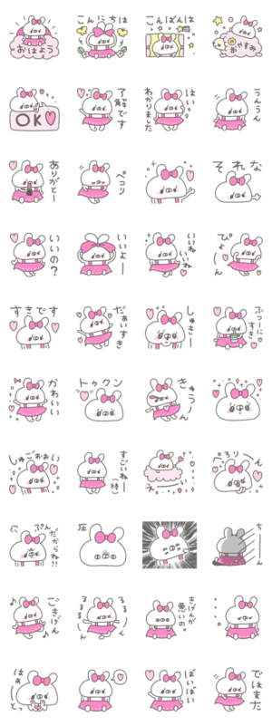 うさやん。女の子のピンクが可愛いスタンプです。大好きな友達、彼氏、家族に送ってね。enacoco より発売