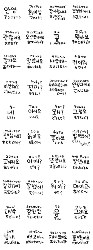 シンプルな韓国語と日本語の日常会話スタンプです。日本語&韓国語