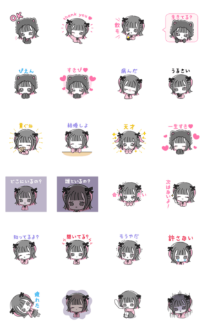 <寂しがり屋な女の子に♥>病みかわいいスタンプで想いを伝えて♪ 黒猫/ハート/地雷/小悪魔/モテ/あざとい/かまって/メンヘラ/ヤンデレ/闇/ツインテール/担当/ホスト/彼氏