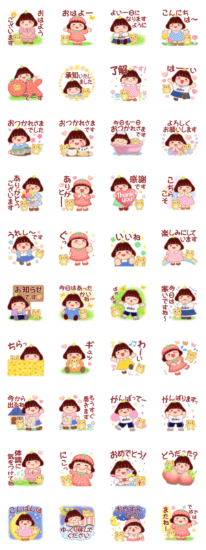 日常の挨拶、優しい気づかいに… 友達や家族、大切な方へ…ちょっと太めの女の子「でぶりん」がおくる春に使えるスタンプです。めぐみん より発売