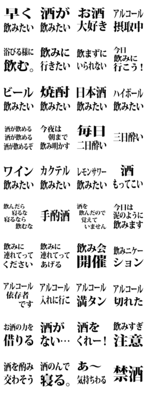 お酒飲みたい!お酒好きな人の文字スタンプ第2弾です。Brody Machine より発売