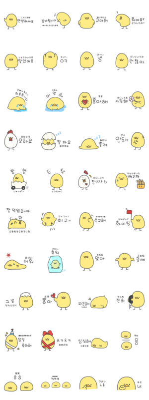 ハングルなヒヨコ(カナルビつき) スタンプ画像一覧