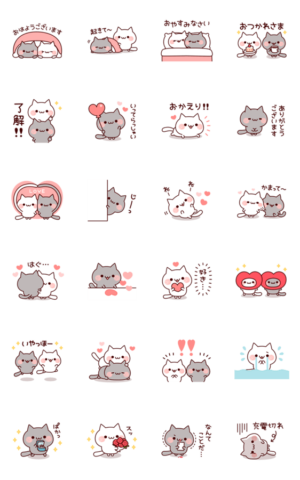 毎日のやり取りやリアクションに便利♪ラブラブで可愛いねこ達の動くスタンプです! (検索ワード:白猫、黒猫、グレー猫、友達、家族、恋人、彼氏彼女、カップル、夫婦)DECOR より発売