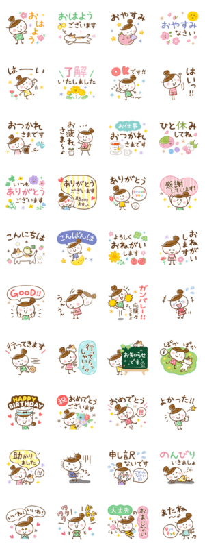 おだんご女子の大人かわいいスタンプです。 日常的に使える挨拶言葉が盛りだくさんです! 春めいたふんわり優しいスタンプになりました♪