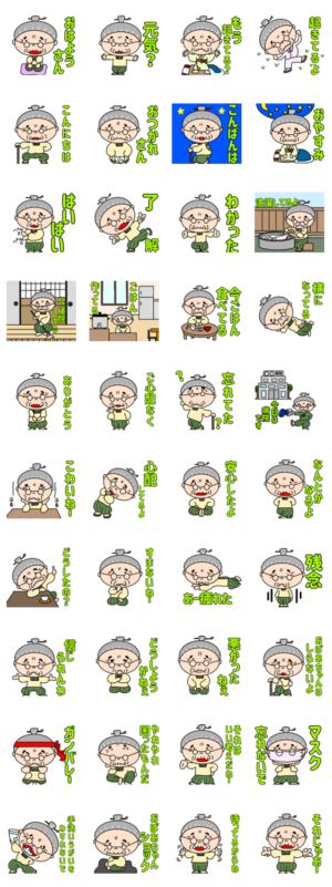 おばあちゃん子には特攻効果の可愛いスタンプです。とぼけた姿もいとおしいですよね。
