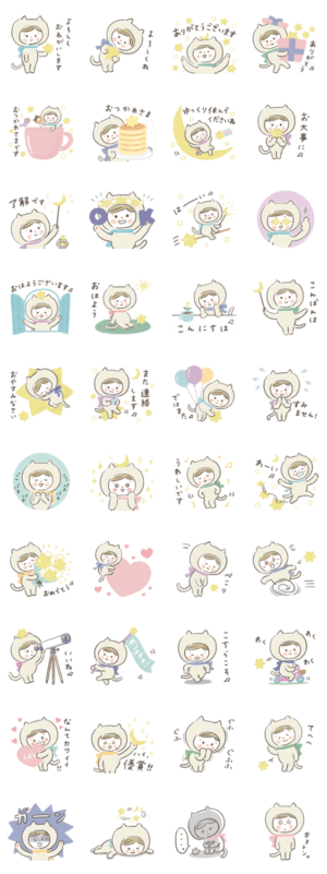 【敬語あり】白ネコのスッカラと星と月 スタンプ情報
