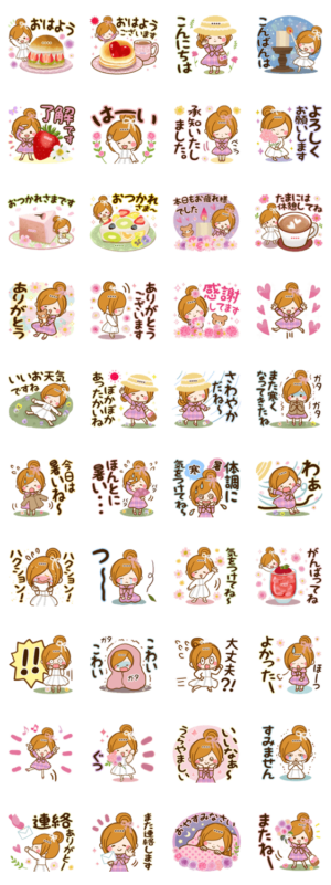 ふんわり大人かわいいワンピースと、お花が散りばめられたはなやかな日常スタンプです♪(こちらは発売したスタンプのカスタム再編集版です)