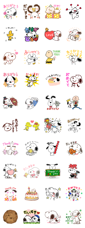 PEANUTSコミック生誕70周年を記念して募集したイラストが素敵なスタンプになりました。「ありがとう」「おめでとう」「だいすき」のメッセージをお届けします。