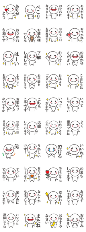 あいさつ、気遣い、感謝など、日常会話で使いやすいスタンプです。HRYs より発売