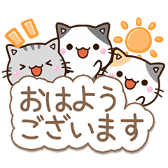 『5匹のちび猫』のやさしい挨拶編。『ちびミケ』の三毛猫や、『ちびシャム』のシャムネコ等の、ねこスタンプ。『かたこ』スタンプの他のキャラも、ちょこっと登場します。