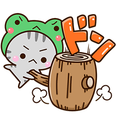 【ちびアメ】のアメリカンショートヘアの、カエルのかぶりものをした猫スタンプ。アメショのネコ好きな方、キジトラ、サバトラのねこを飼っている方にぜひ。【かたこ】かたこ より発売