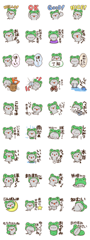 猫のカエルバージョンが可愛い。猫好きさんにはオススメのスタンプです。